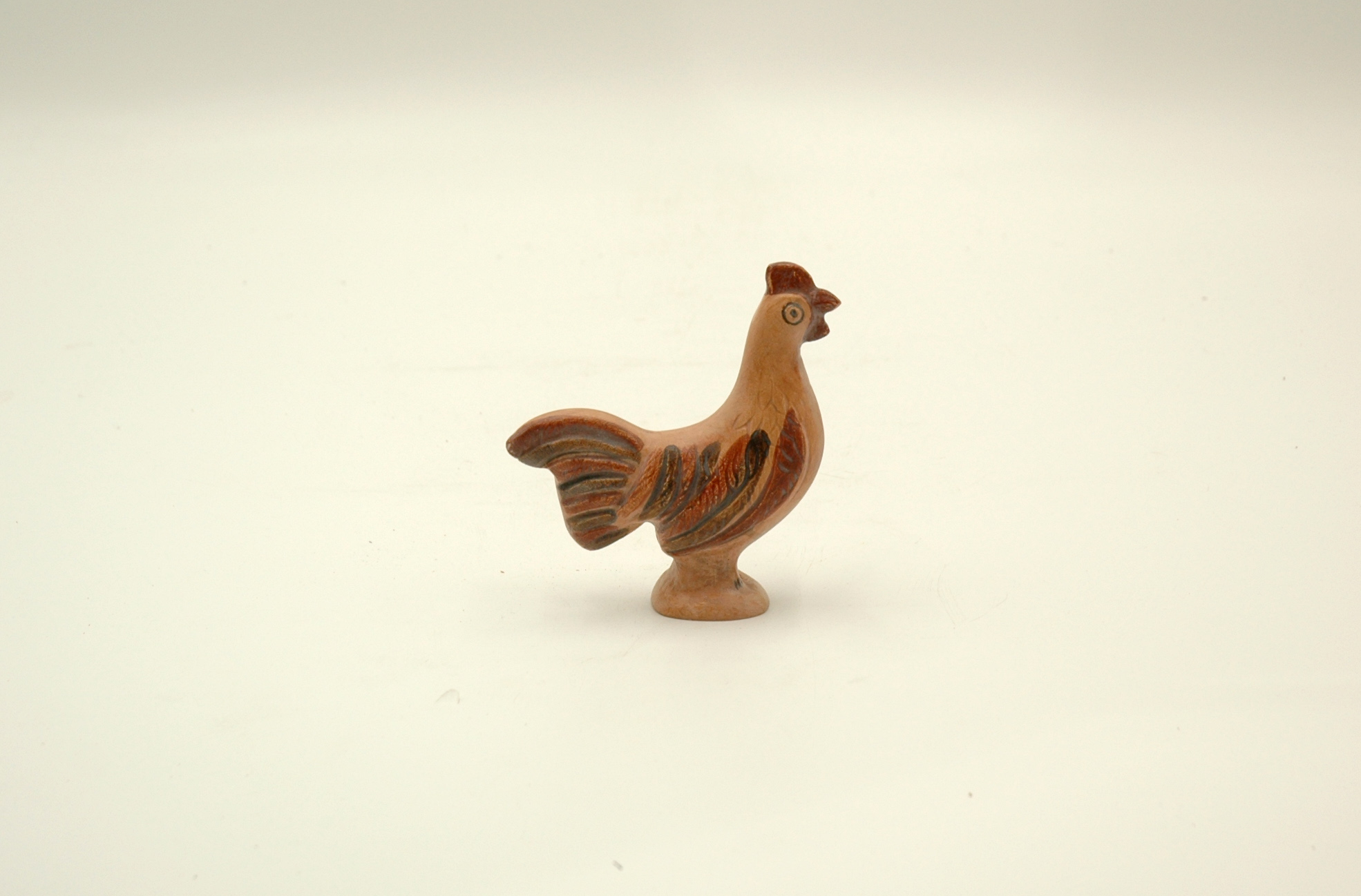 The little ceramic rooster takes its inspiration from the illustration seen on a clay plate of 520-505 BC. There, the rooster is depicted with a lotus flower and a lizard on the plate’s central well. The plate can be seen at the Acropolis Museum when visiting the Gallery of the Acropolis Slopes on the ground floor of the Acropolis Museum